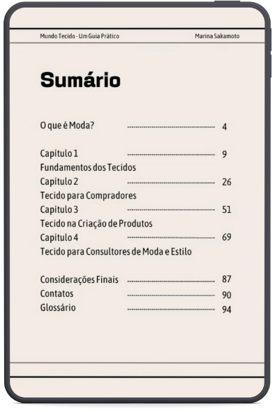 Este livro foi pensado para estilistas, consultores, compradores e profissionais de moda que querem aprofundar seu conhecimento têxtil e fazer escolhas mais assertivas. Você vai encontrar explicações claras, dicas práticas, glossário técnico, indicações de fornecedores e orientações sobre qualidade, sustentabilidade e uso correto dos materiais. Um guia essencial para quem trabalha com moda e quer se destacar com mais conteúdo e consciência.